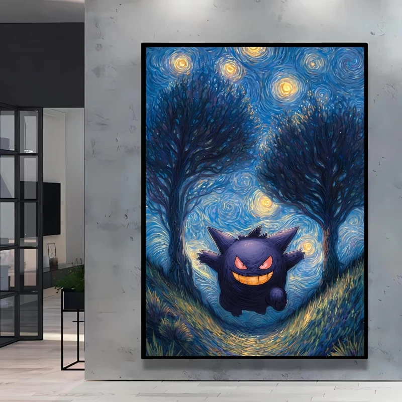 Ce poster transforme instantanément une pièce en véritable galerie geek chic. Les coups de pinceau texturés, les contrastes lumineux et l’ambiance nocturne rappellent les toiles impressionnistes tout en conservant l’esprit joyeux de Pokémon. Idéal pour salon, chambre, bureau ou espace gaming.